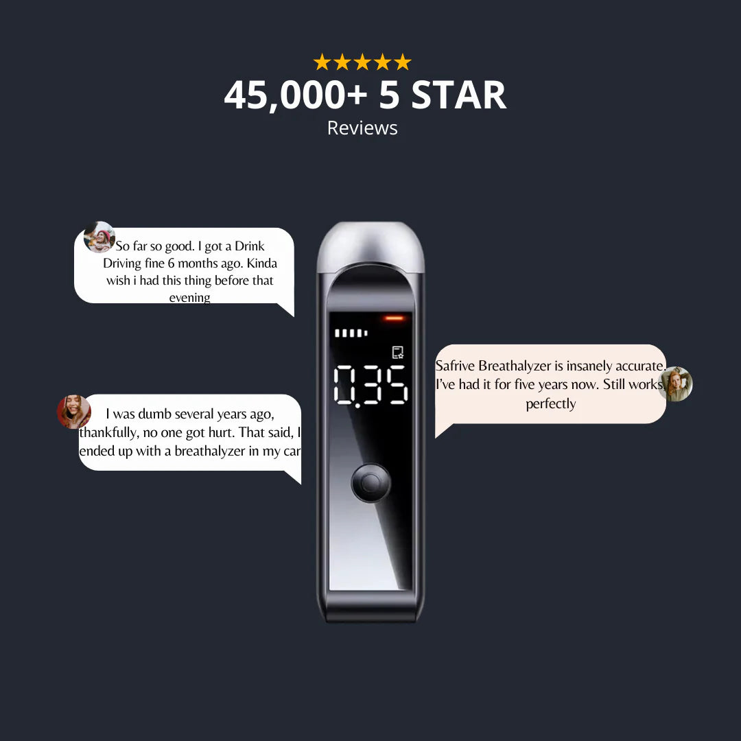 When it comes to alcohol, there is often a significant difference between how you feel and how impaired you actually are.The Safrive Breathalyzer helps eliminate that uncertainty by giving you an actual number to put with that feeling, empowering you to make better decisions while drinking.